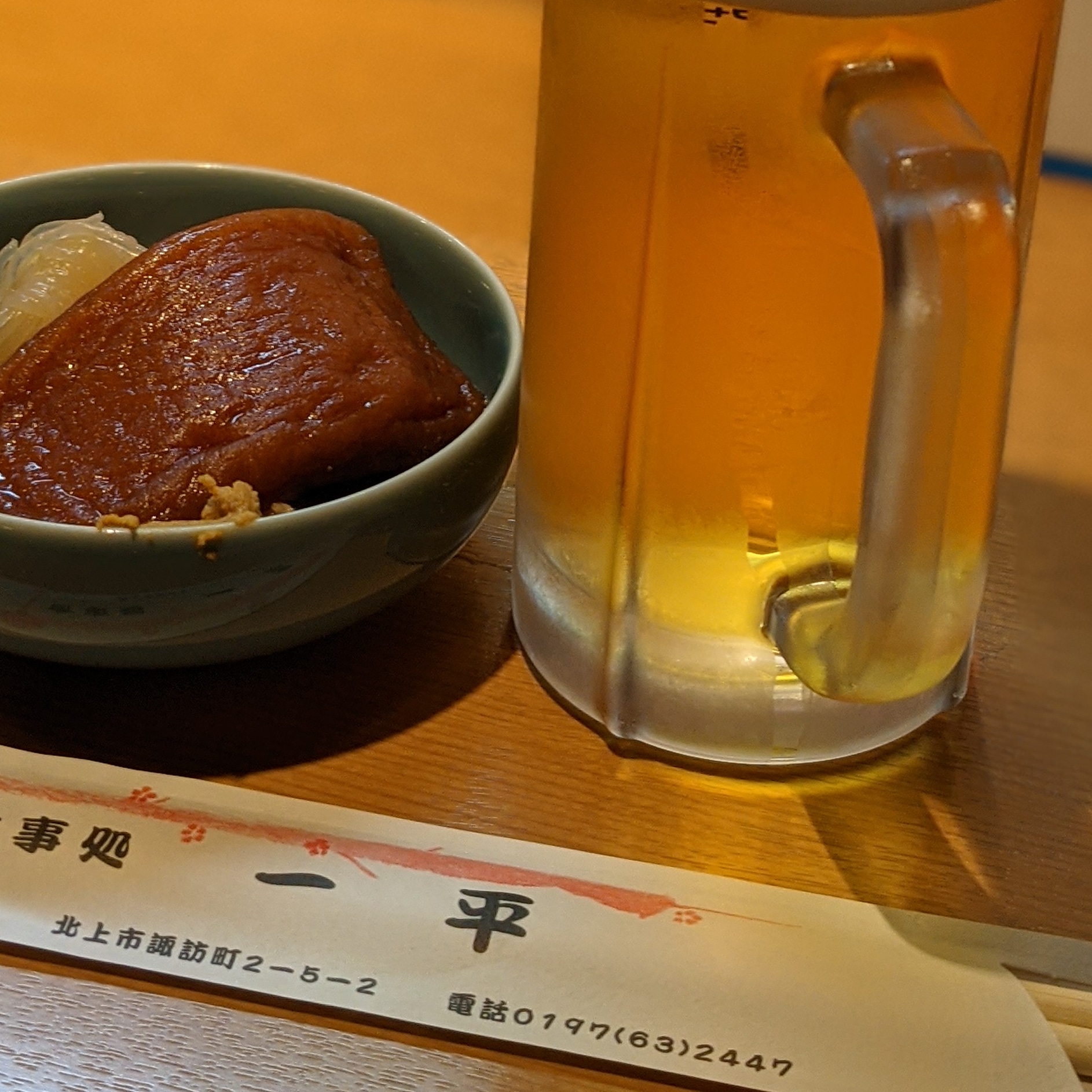 地元の佐々長醤油をベースに四種類の醤油をブレンドし、貝柱、干し椎茸を加え火入れをして一週間ねかせて使用しております。